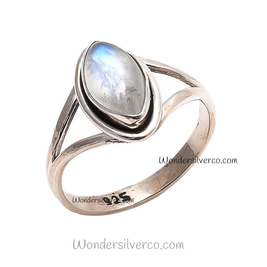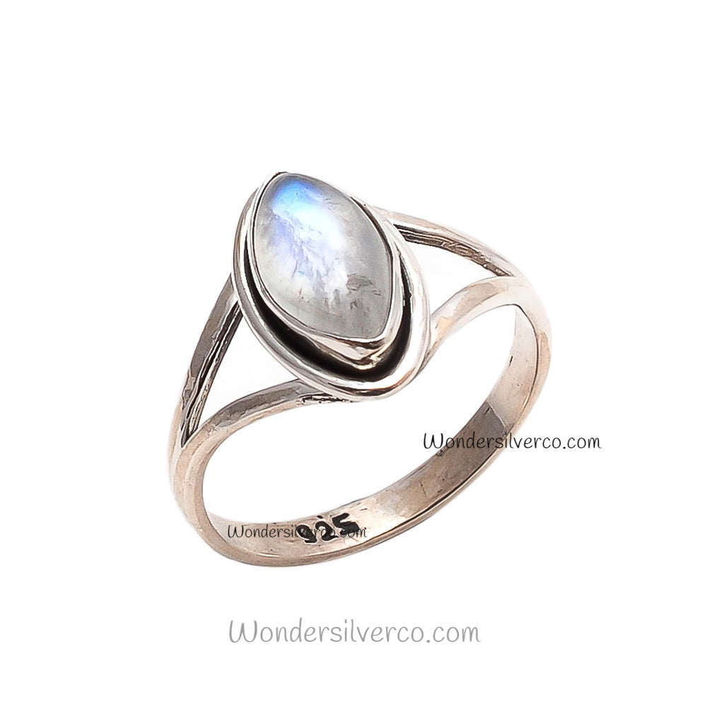 Rainbow Moonstone Ring - 925 Sterling Silver For Women Girls Handmade Jewelry