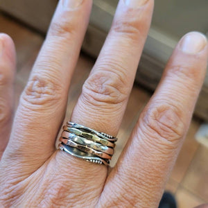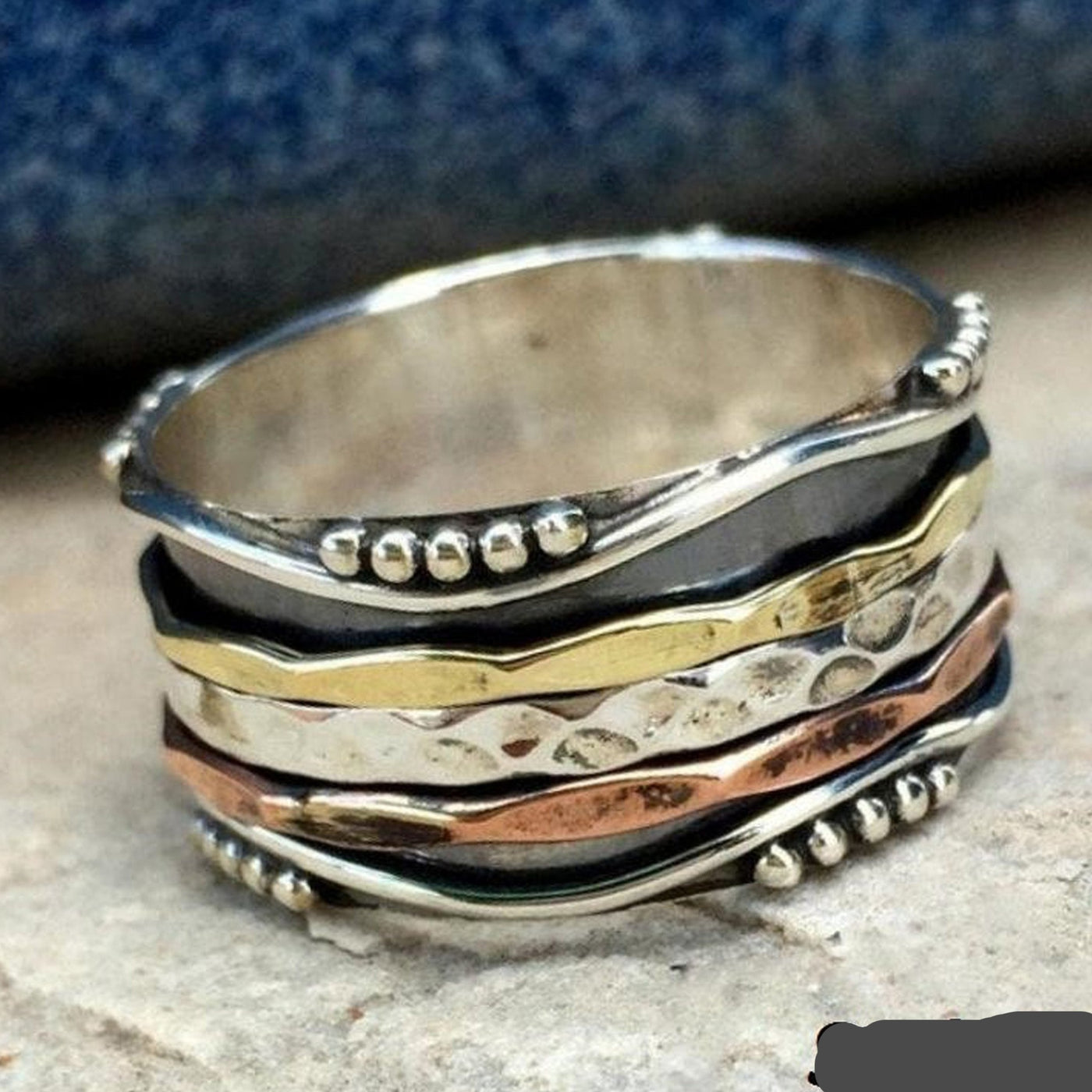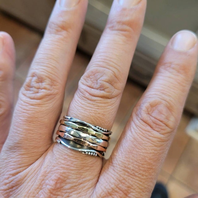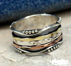 Three Tone Spinner Ring, 925 Sterling Silver Spin Ring