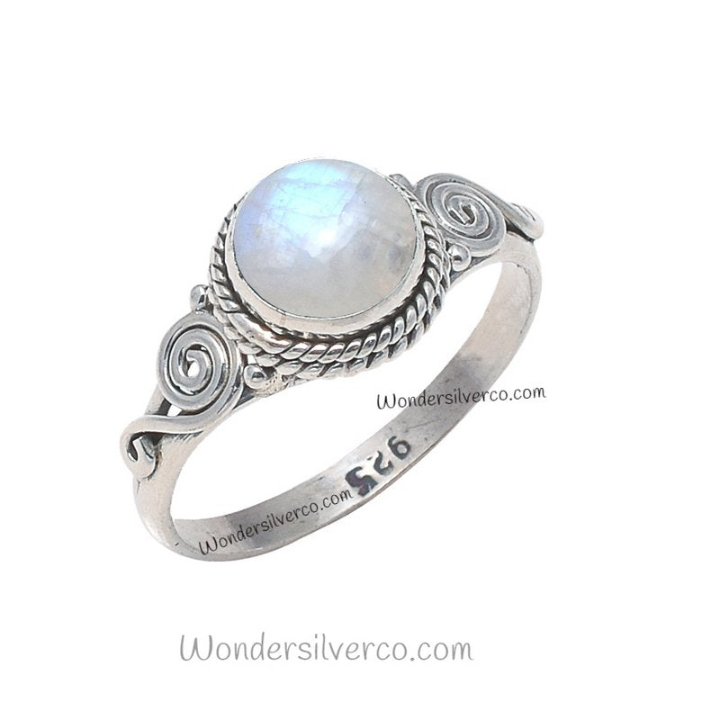 Rainbow Moonstone Ring - 925 Sterling Silver For Women Girls Handmade Jewelry